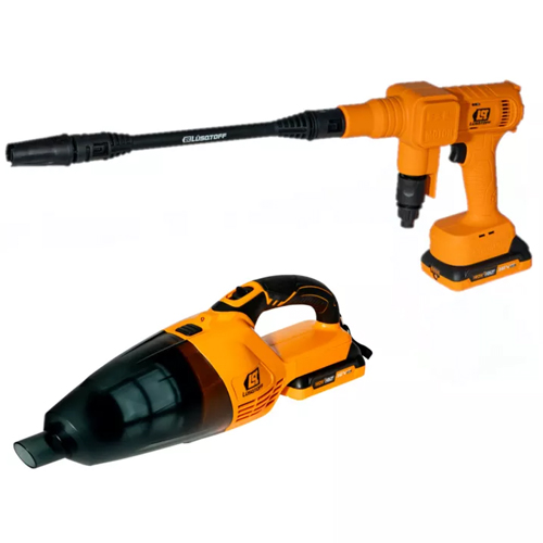 El set incluye una manguera, lanza extensible, boquilla pulverizadora ajustable, filtro de aspiración, baterías de 2 Ah, cargador rápido y maletín de traslado, además de accesorios específicos para la aspiradora. El combo Hidrolavadora + Aspiradora Lusqtoff SD1 es una opción versátil y funcional para el mantenimiento del hogar y el auto.