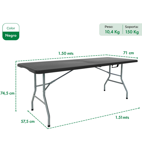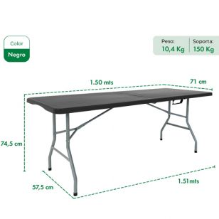- Mesa Camping Plegable Garden Life 1,50m T404001 Negra