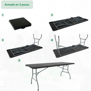 Fabricada con tapa de polipropileno negro (HDPE), la Mesa Camping Plegable Garden Life 1,50m T404001 es resistente a los rayos UV, fácil de limpiar y amigable con el medio ambiente. Su estructura con patas de acero asegura estabilidad y durabilidad, incluso en superficies irregulares.