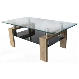 La Mesa Ratona Decototale RA-002 Ana combina tapa de vidrio con patas de madera, logrando un diseño moderno y resistente que se adapta a distintos estilos de decoración.