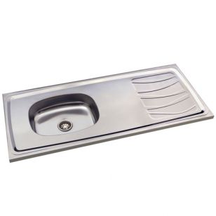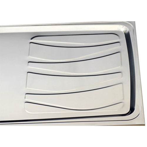 La Mesada Ricchezze está fabricada en acero inoxidable AISI 430, sin zócalo, bacha reversible y utilizable tanto izquierda o derecha.