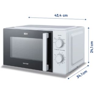 Compacto, seguro y funcional, el Microondas BGH 18L Mecánico B118MB25 combina estilo clásico con eficiencia moderna. Con medidas de 43,4 × 24,1 × 34,1 cm y un peso de 6,6 kg, es la elección perfecta para quienes desean un microondas versátil y fácil de integrar en cualquier cocina.