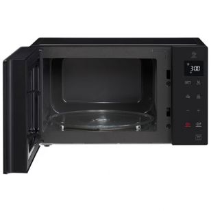 El diseño del Microondas LG 25L Digital C/Grill Inverter MH6535GIS destaca por su acabado en color negro con puerta ahumada y panel táctil lateral con pantalla LED. Incluye funciones prácticas como añadir 30 segundos, bloqueo infantil y avisador de finalización, aportando comodidad y seguridad en cada preparación.
