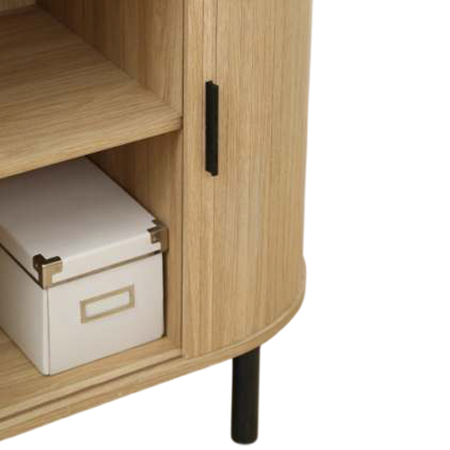 Fabricado con tablero MDF y detalles en tubo metálico color negro, el Organizador Varillado Avelino 31280D ofrece una estética industrial elegante. Cuenta con una práctica puerta corrediza que permite ocultar objetos y mantener el orden visual del espacio, ideal tanto para uso doméstico como profesional.