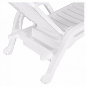 La REPOSERA TORONTO está íntegramente fabricada en plástico reforzado color blanco, cuenta con apoya brazos para mayor comodidad.