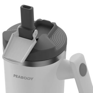 El Vaso Térmico Peabody 950ML PE-MG950B destaca por su practicidad: cuenta con una manija ergonómica giratoria de dos posiciones para facilitar el traslado, base adaptable para automóviles, y una tapa antiderrames que garantiza seguridad durante el movimiento. Su boca ancha permite cargar líquidos con facilidad y también simplifica la limpieza diaria.